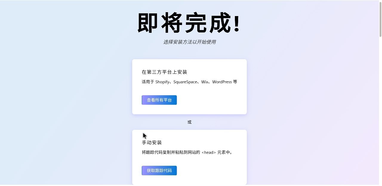 点击 获取跟踪代码 ,会获得一段 HTML 代码,将其插入每一个界面的 HTML 中