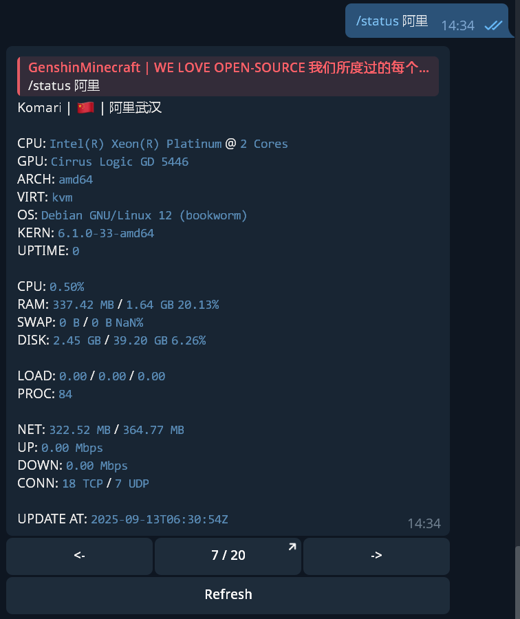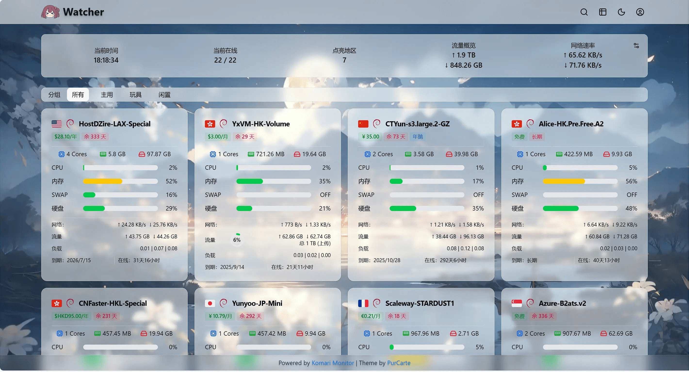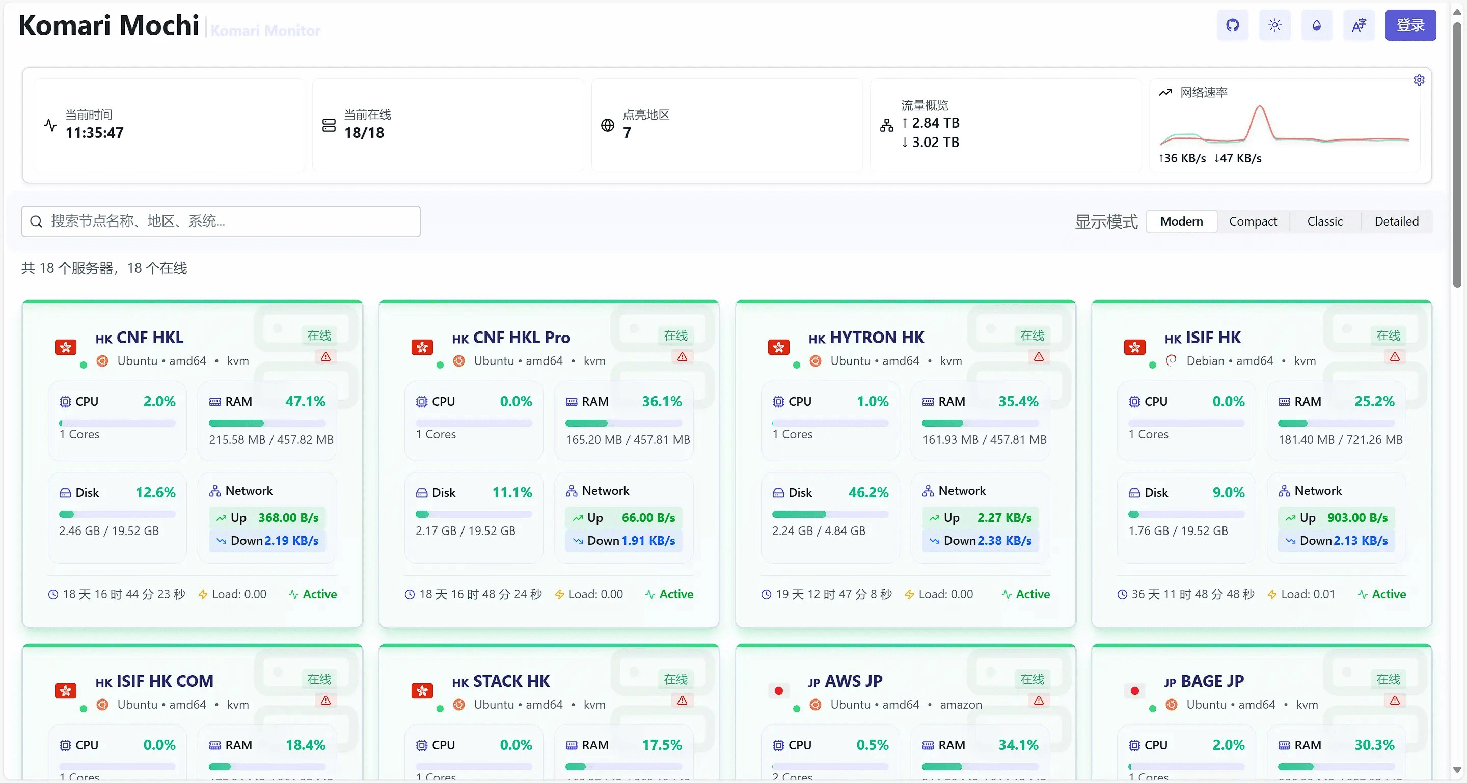 开发者活跃: 包括在 Maintainers、主题开发者、Agent 开发者以及 7788 的社区开发者,在目前都还在积极活跃。所以比一些比较烂尾的项目好多了 (对比的是 Akile Monitor,主仓库已 9 月没更新)轻量化: 当然吹的是本人开发的 komari-monitor-rs,作为一个 Agent 可以保证是同类中最低占用的- … 挺多的