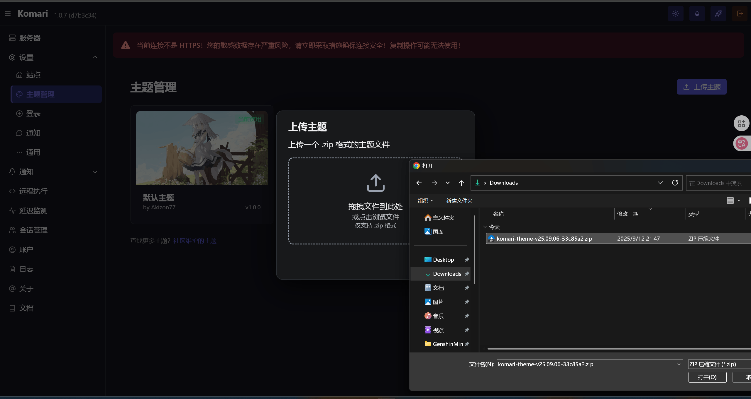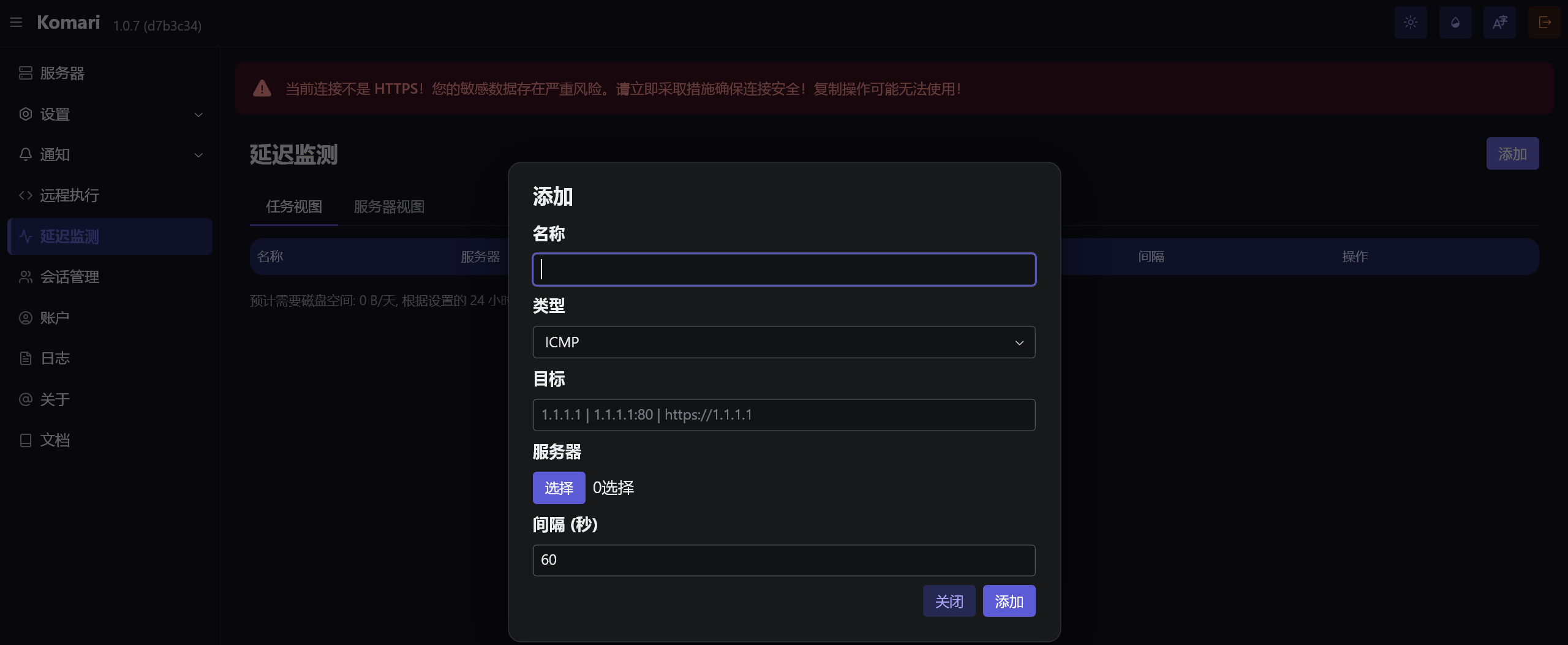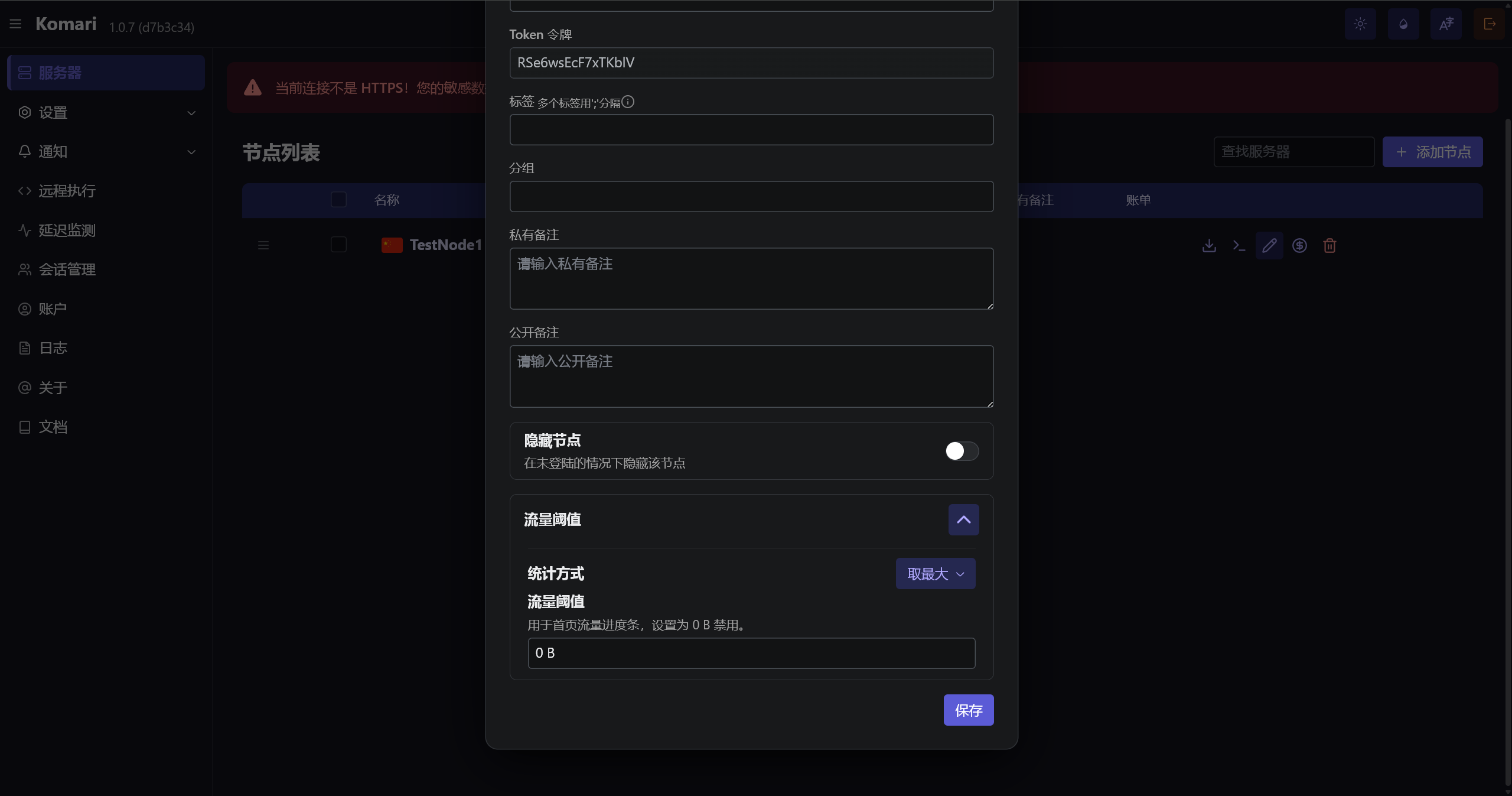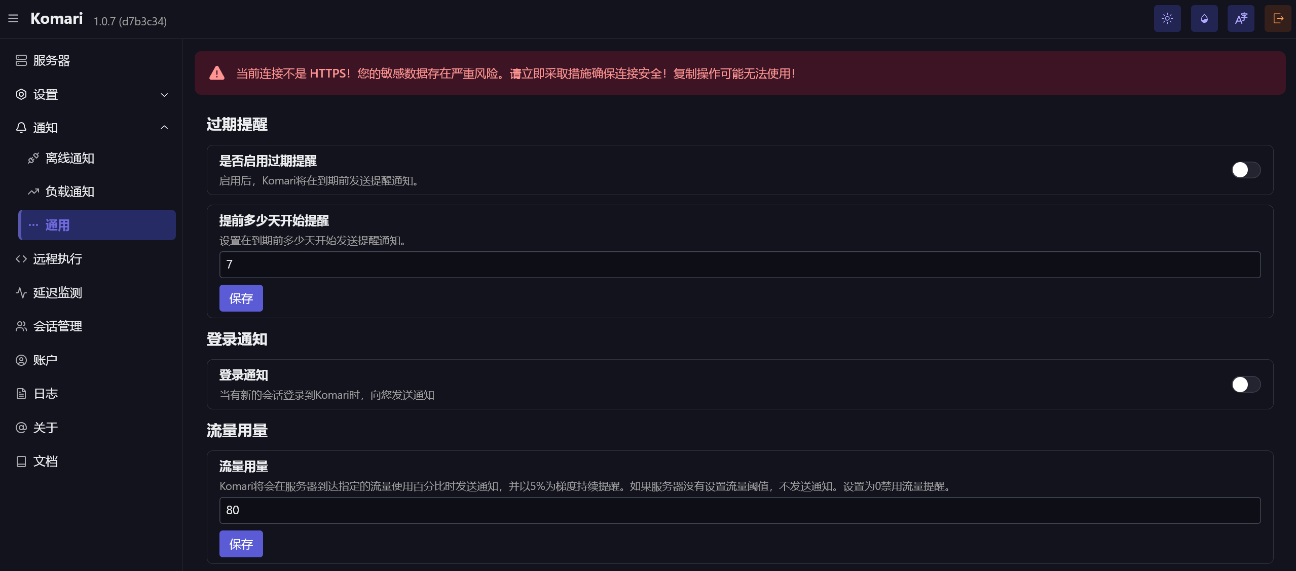 初次登录 Komari 主要是为了验证服务以及建立,接下来我们需要根据自己需求来配置,这非常个性化,不要尝试直接套用本文参数