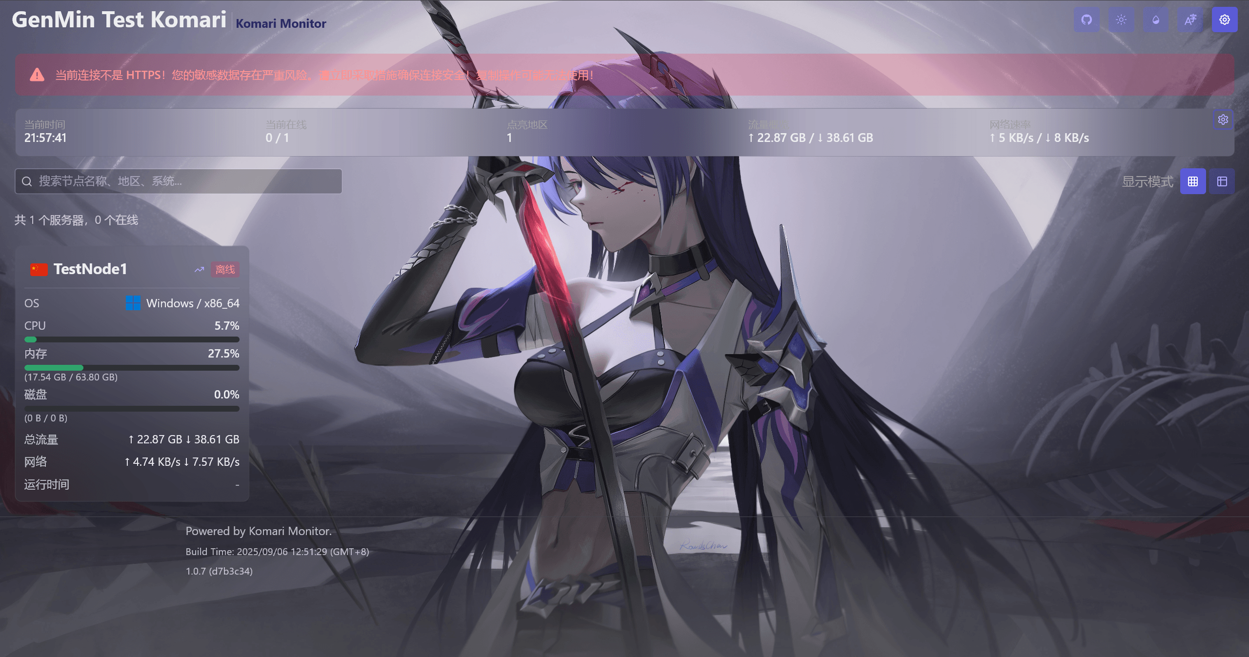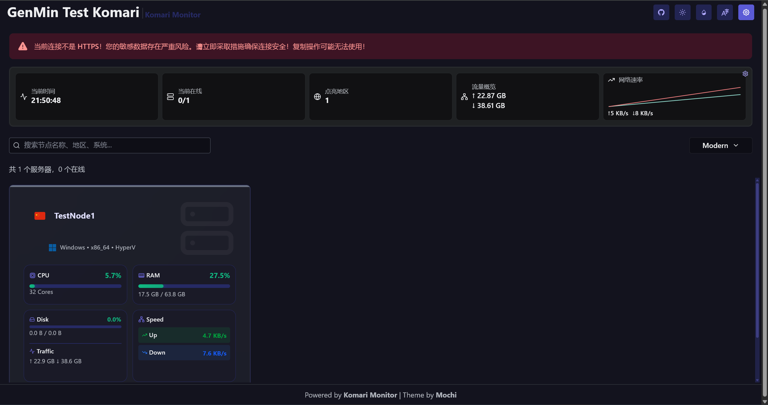 在本文编写期间,我临时创建了一个 Komari 服务在本地