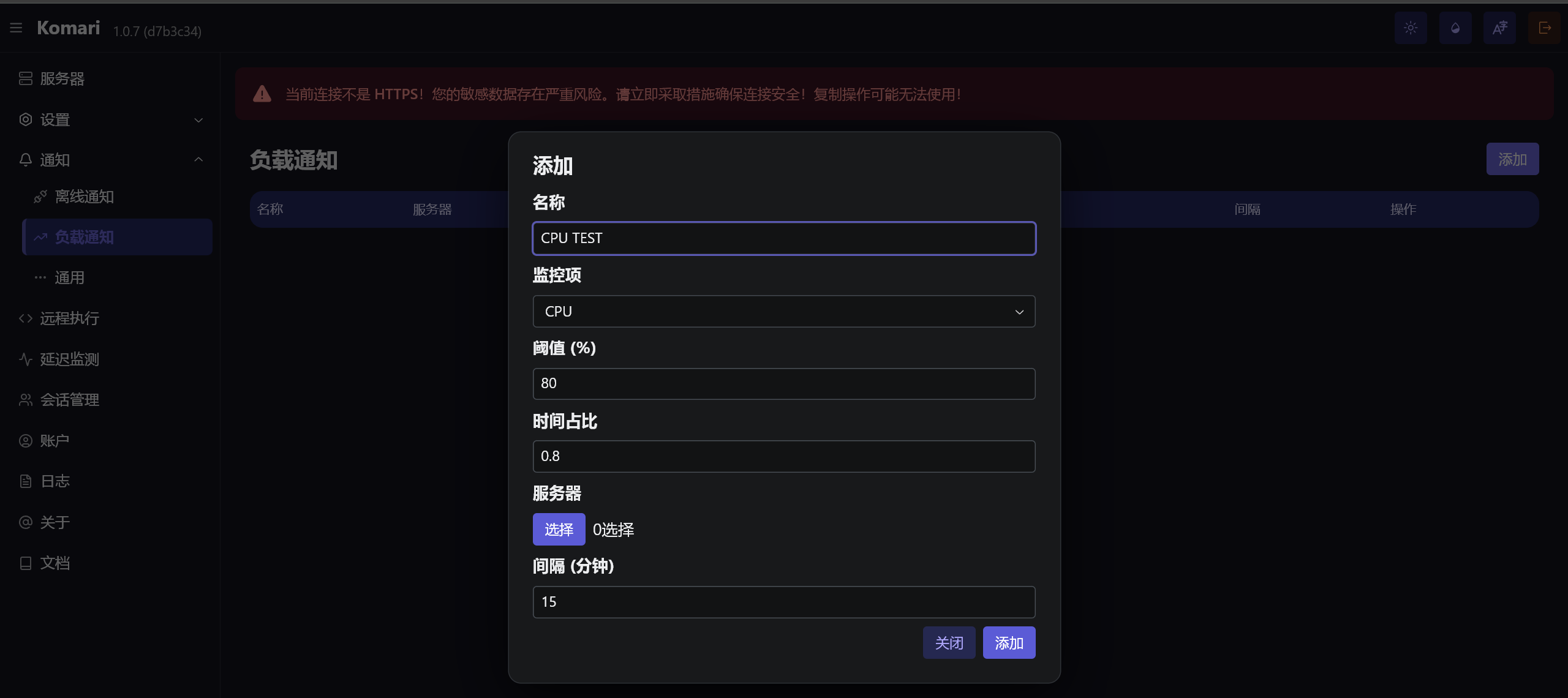来到 Komari 后台 通知-负载通知,可以选择服务器进行修改: