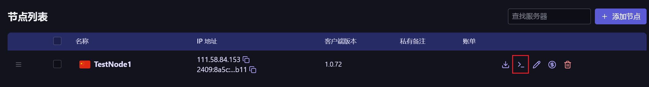 在 Komari 后台 服务器 中可以连接到每一台服务器的终端 (除非其关闭了远程终端功能):